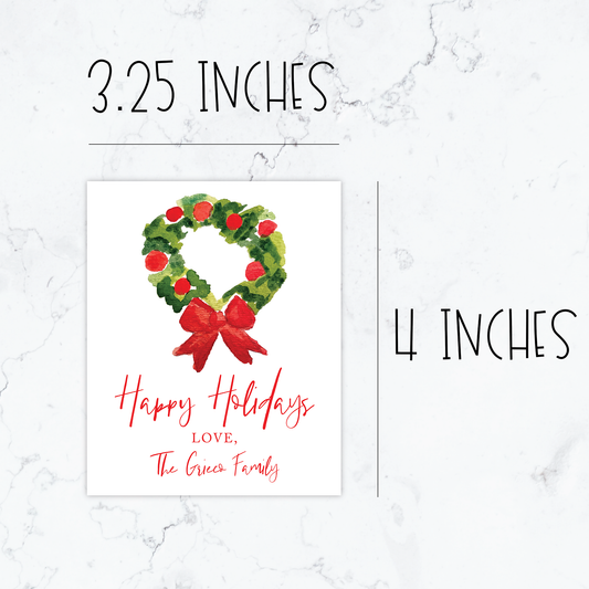 Personalized Watercolor Christmas Wreath Sticker Gift Tags