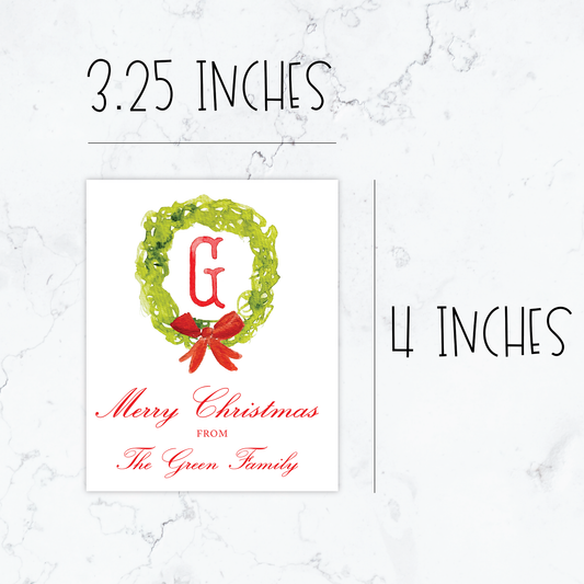 Personalized Watercolor Monogram Christmas Wreath Sticker Gift Tags