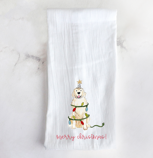 Festive Christmas Golden Retriever Tea Towel