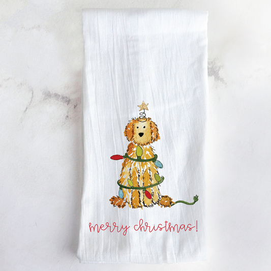 *Quick Ship* Festive Christmas Apricot Doodle Tea Towel