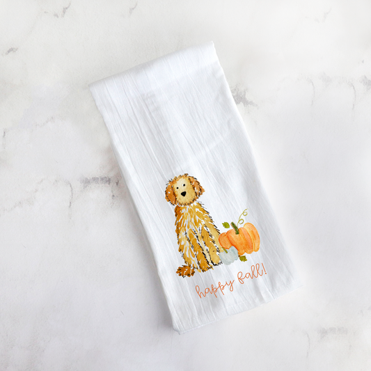 Fall Pumpkin Golden Retriever Tea Towel