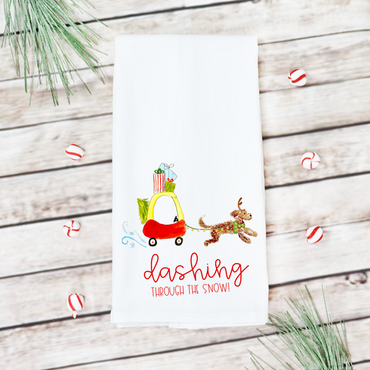 Festive Christmas Play Car Doodle Tea Towel