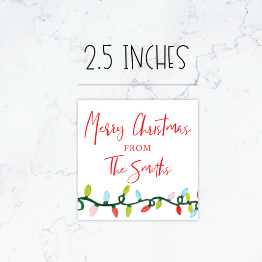 Personalized Watercolor Christmas Lights Sticker Gift Tags