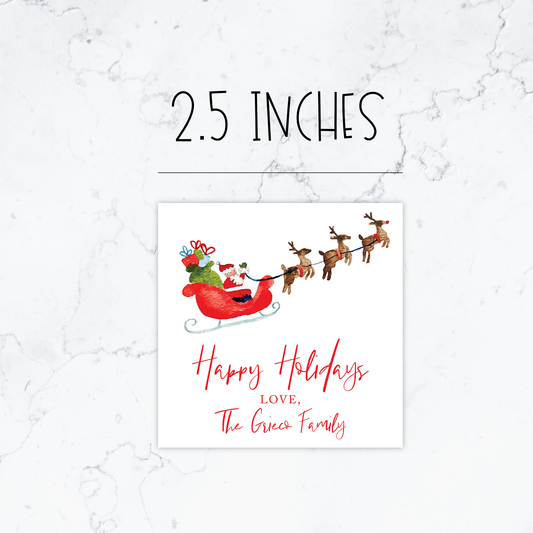 Personalized Watercolor Flying Santa Sticker Gift Tags