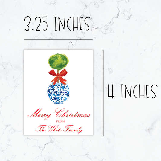 Personalized Watercolor Christmas Topiary Sticker Gift Tags