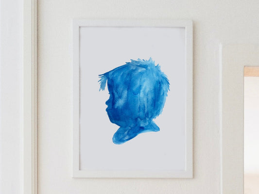 Custom Hand Painted Watercolor Silhouette Pet and Child Portrait