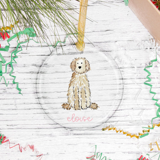 Personalized Goldendoodle Glass Christmas Ornament