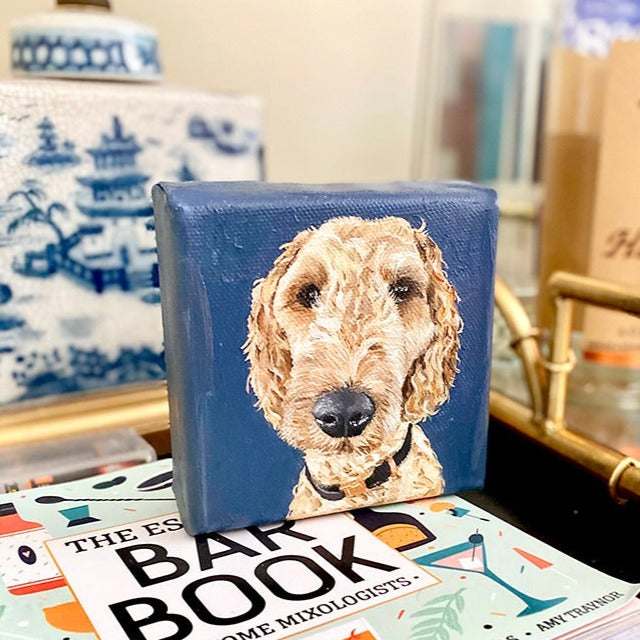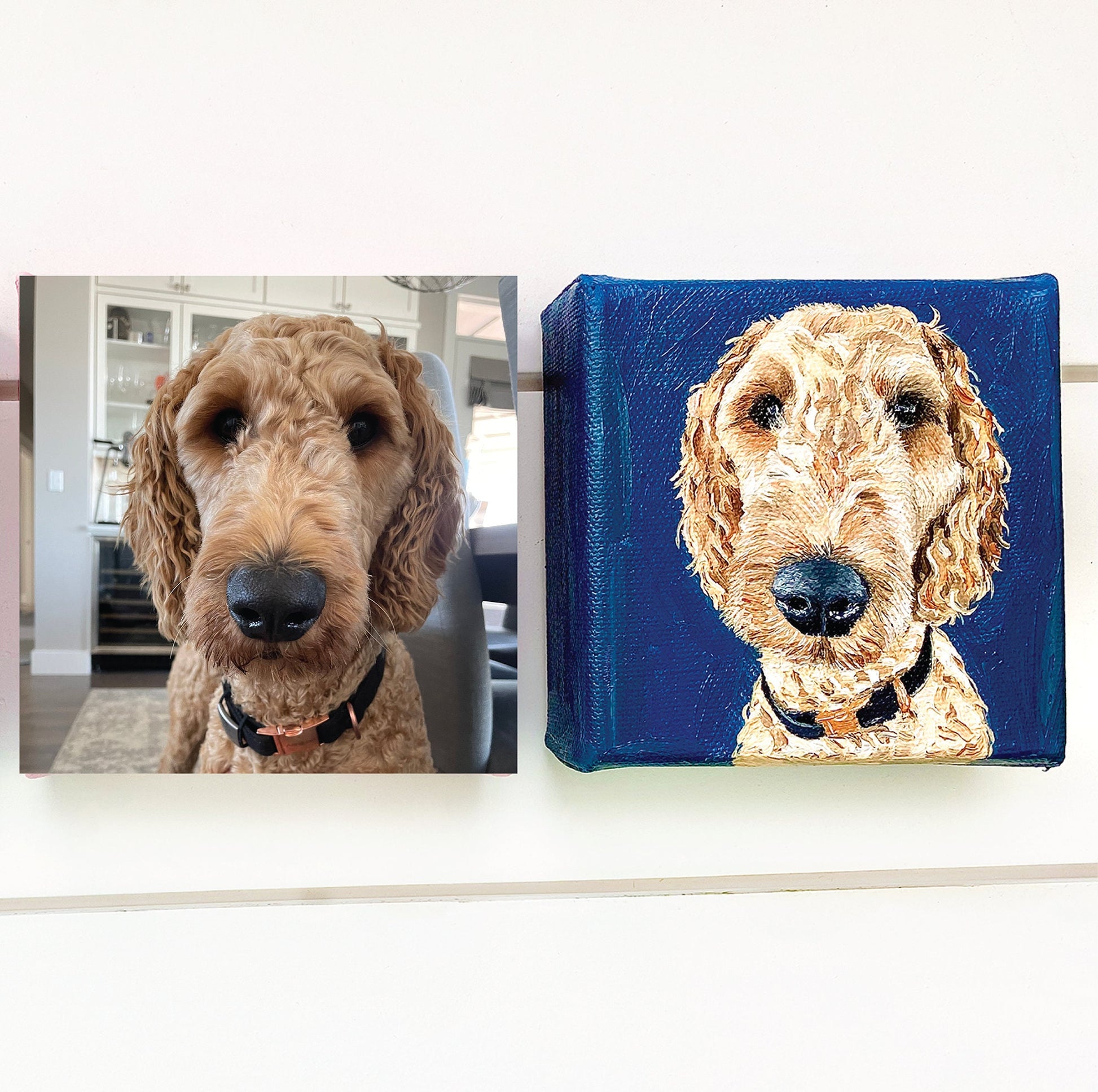Spoil your favorite fur friend with a custom oil painting! Just send me a quality picture of your pet (please no screenshots), pick out a background color, and give me a month! These make the perfect gift for a friend -- or yourself! I specialize in portraits from the chest up with simple backgrounds (as seen in the photos above.) This portrait is painted with oil paint on a 4in x 4 in stretched canvas. *framing is not available at this time. Please feel free to message me with questions prior to making a purchase.