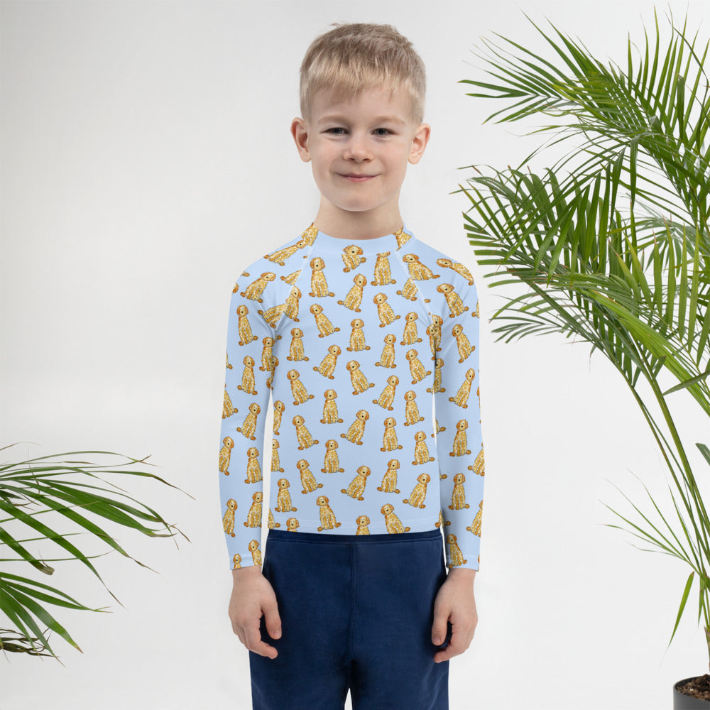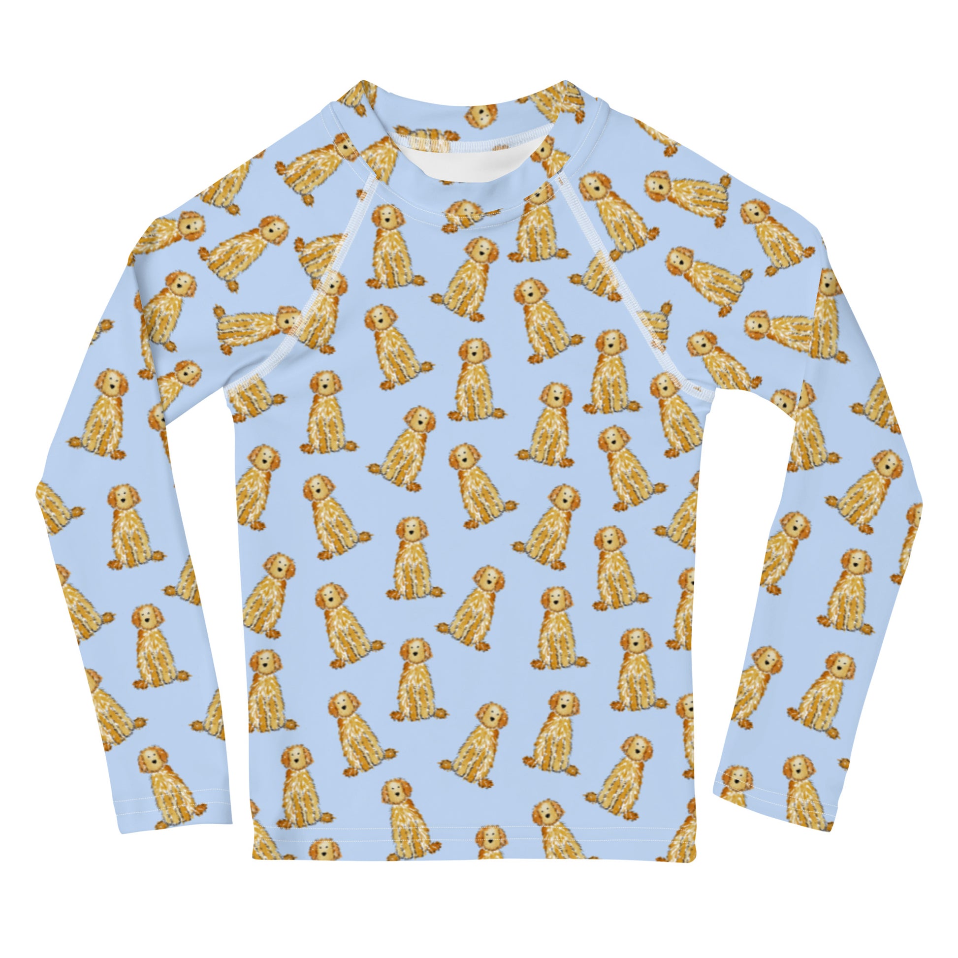 Apricot Doodle Kids Swim Rash Guard - Blue