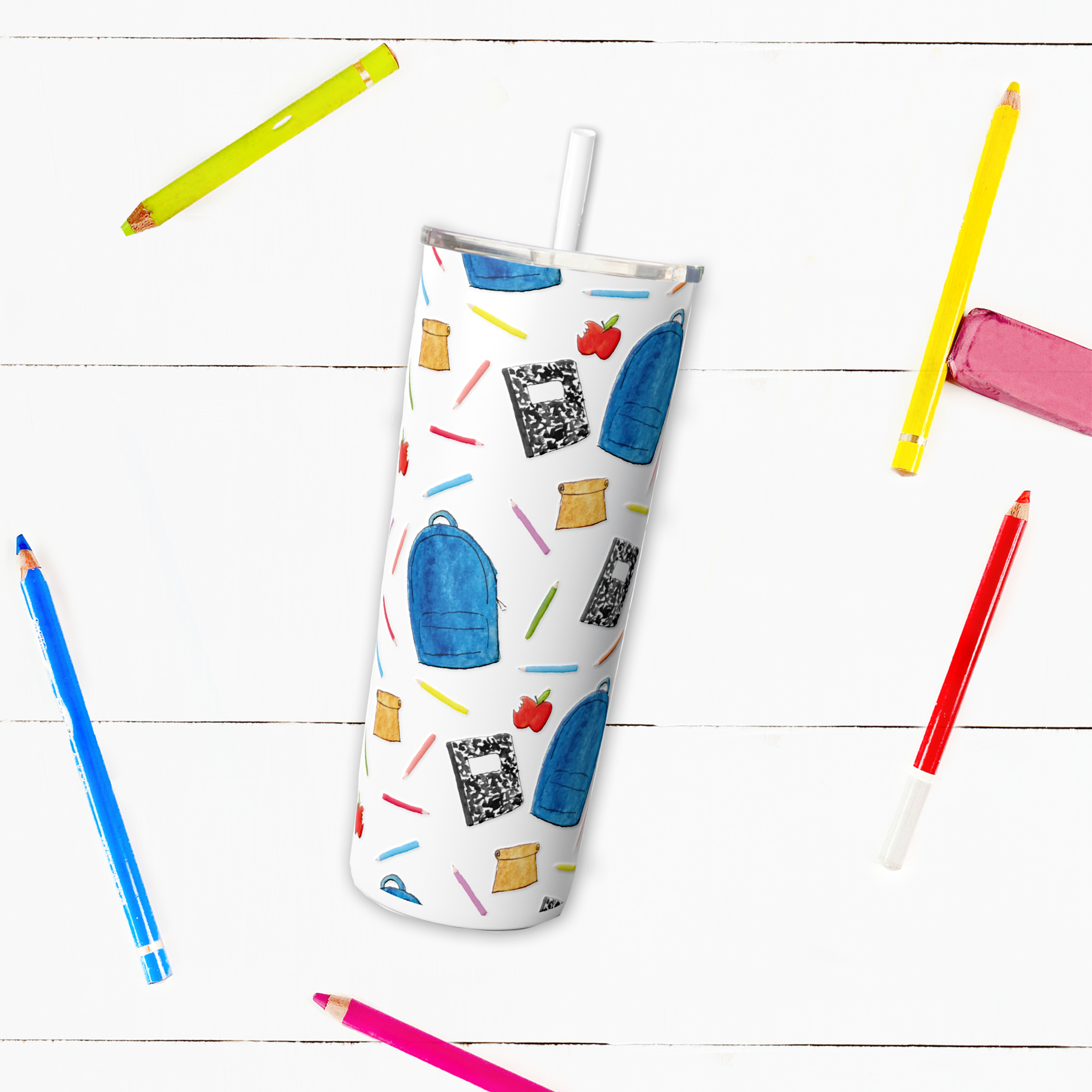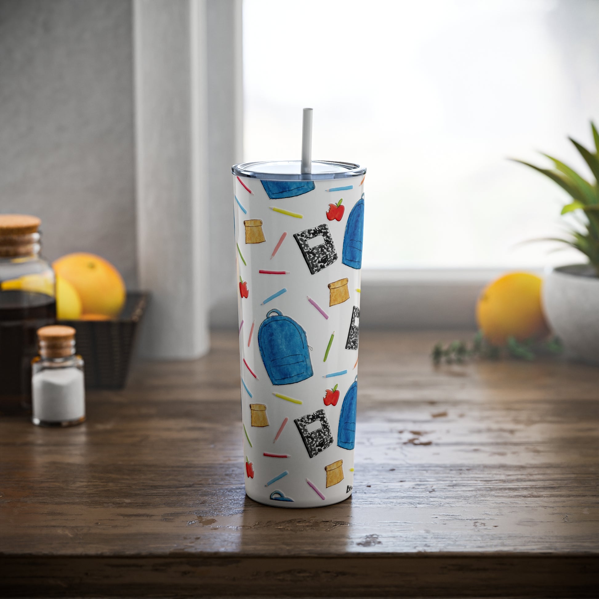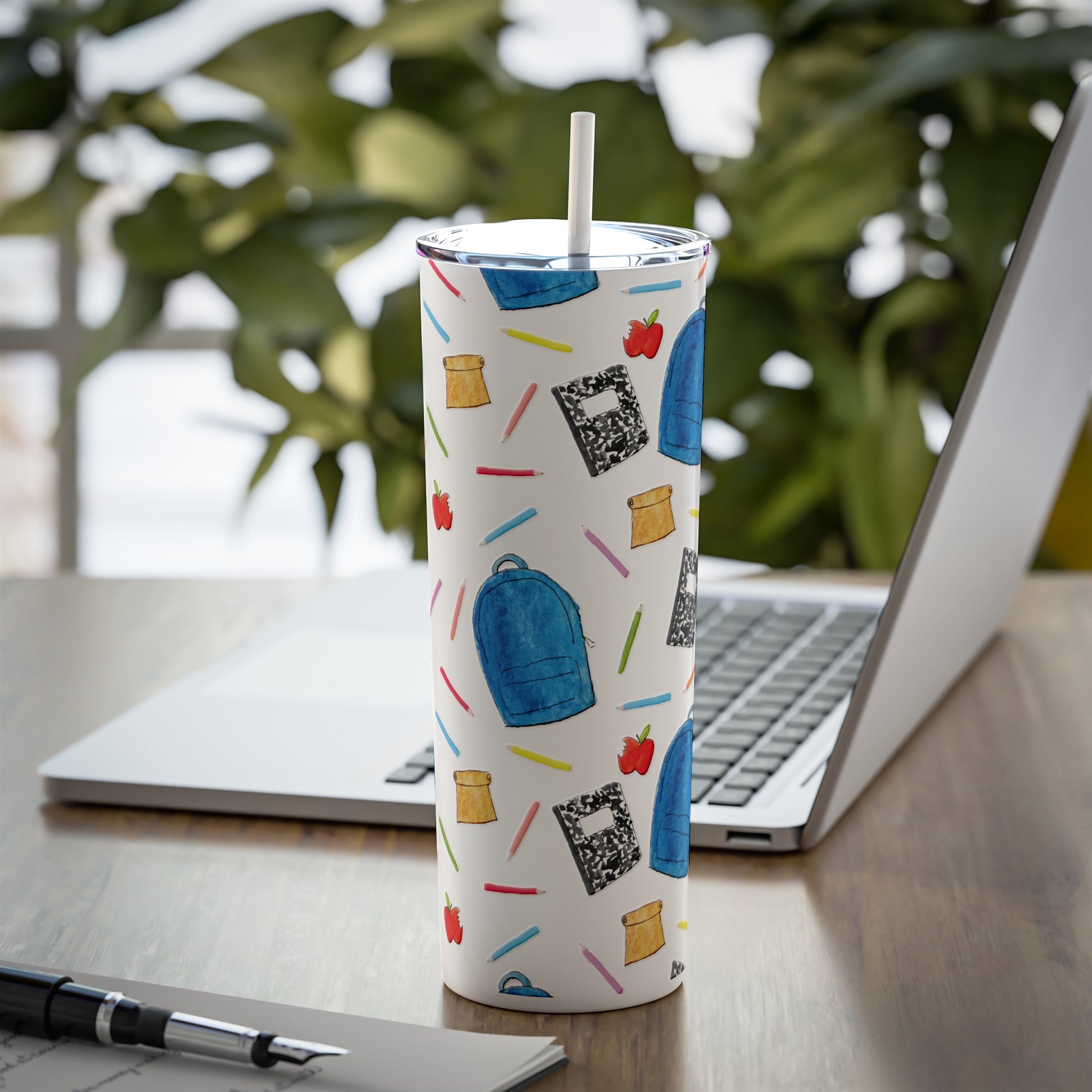 Back to School Pattern Skinny Steel Tumbler