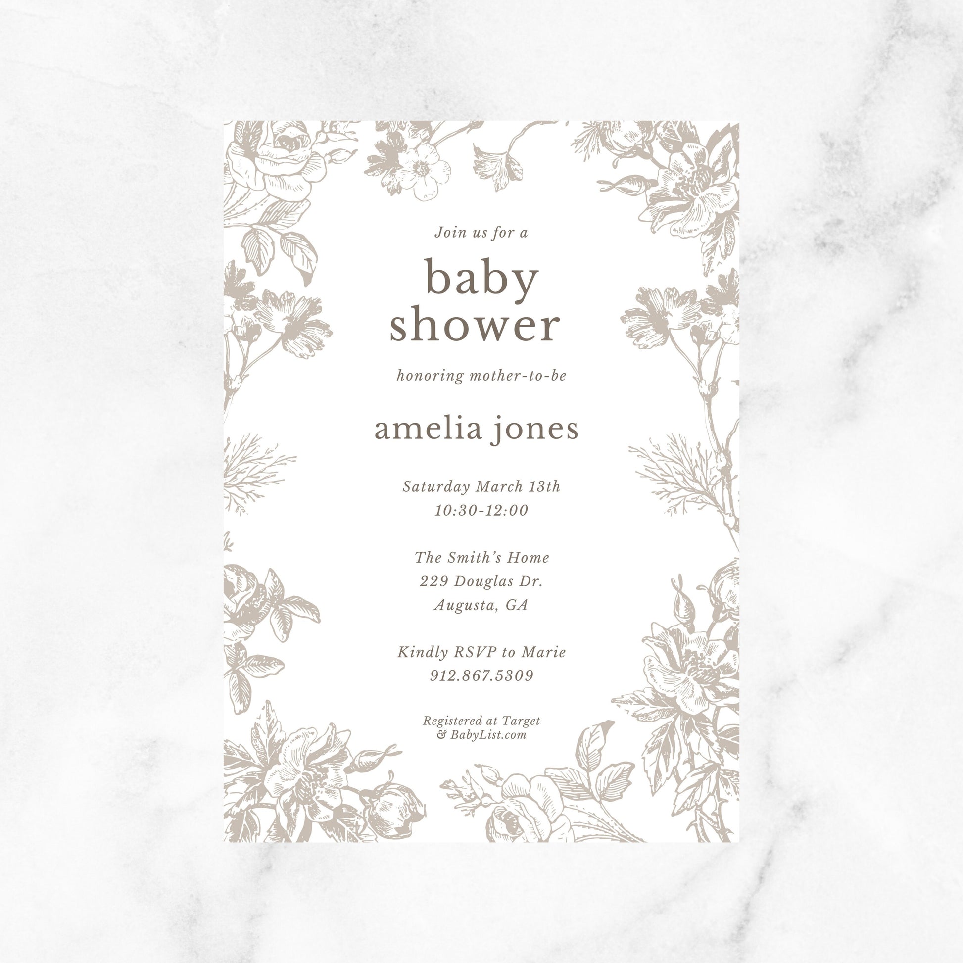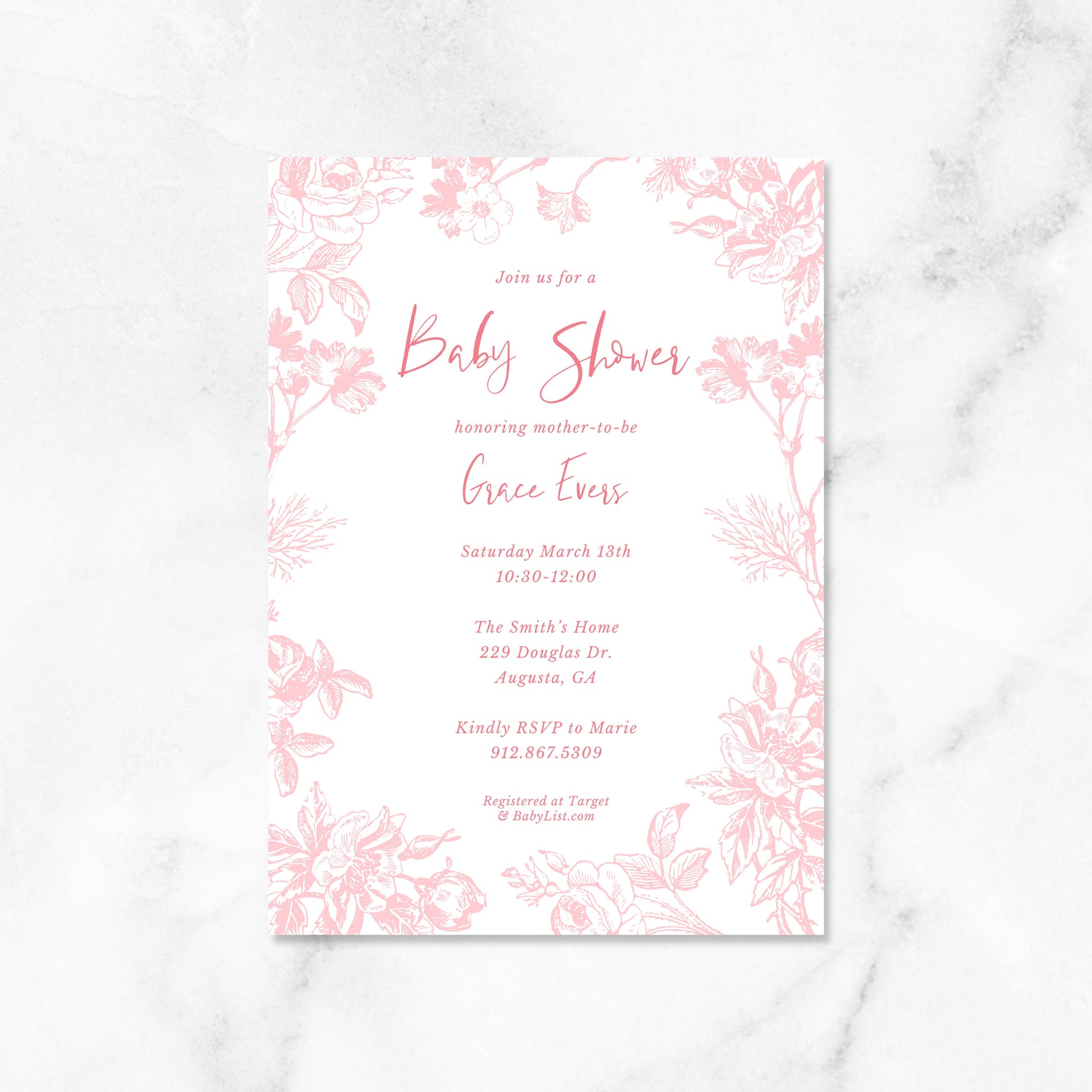 Chinoiserie Inspired Floral Baby Shower Invitations