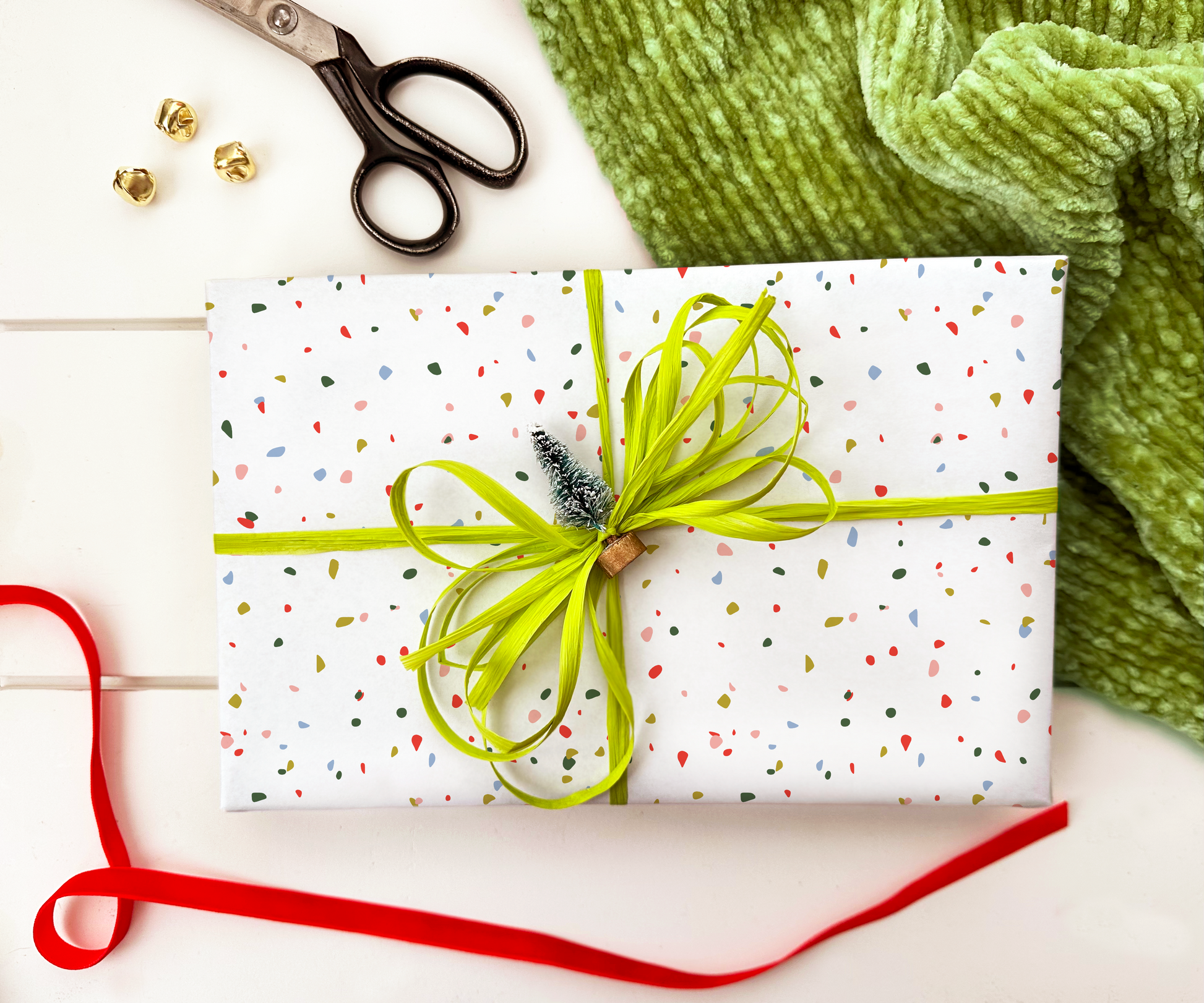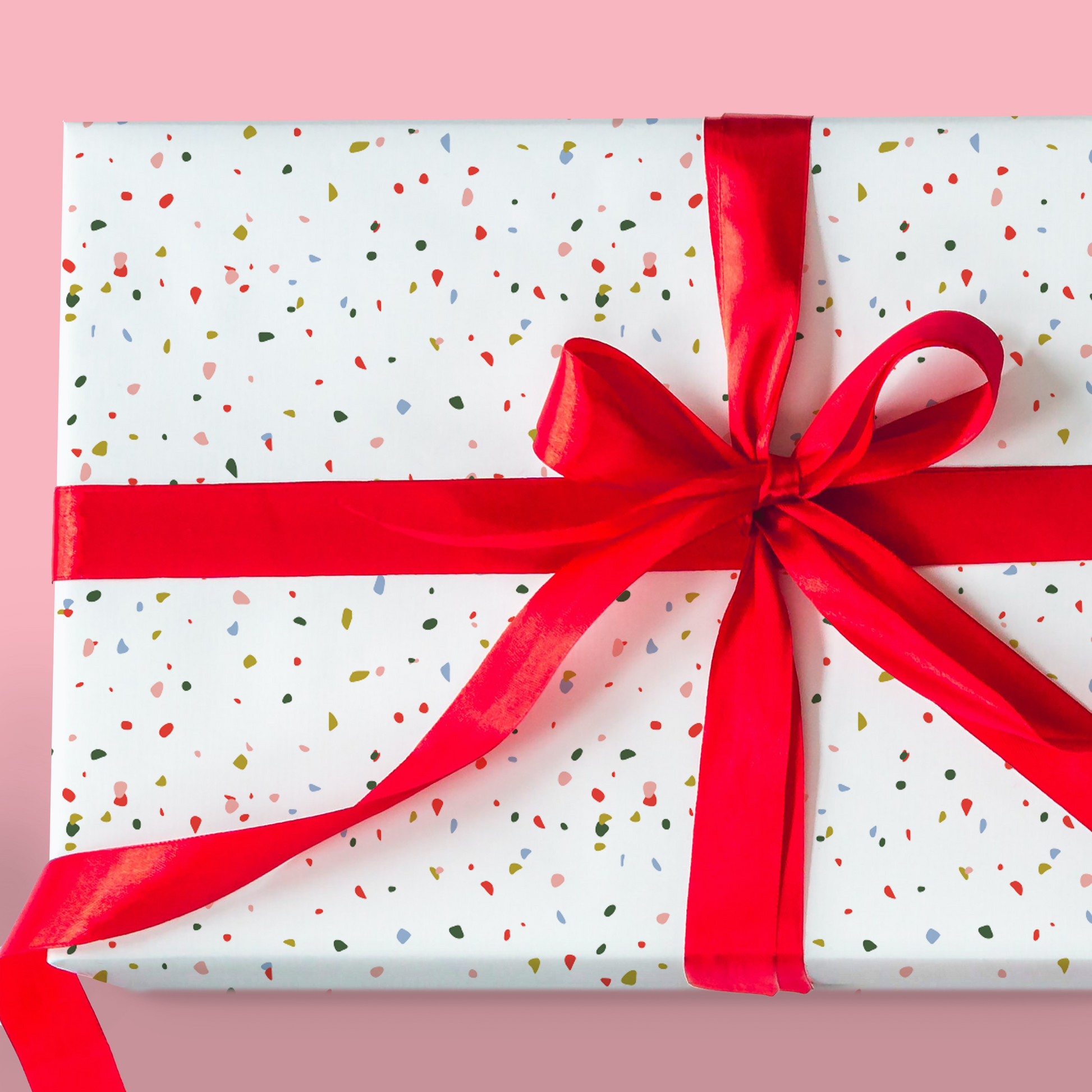 Make your gifts extra festive this holiday season with wrapping paper featuring a festive Christmas confetti pattern! This gift wrap is available in two paper finishes: satin or matte, and three different size options. So whether you're looking for sheets or a gift wrap roll, you're covered! Each gift wrap sheet is printed using GreenGuard UL Certified inks on blank paper is made in the USA under strict quality control.