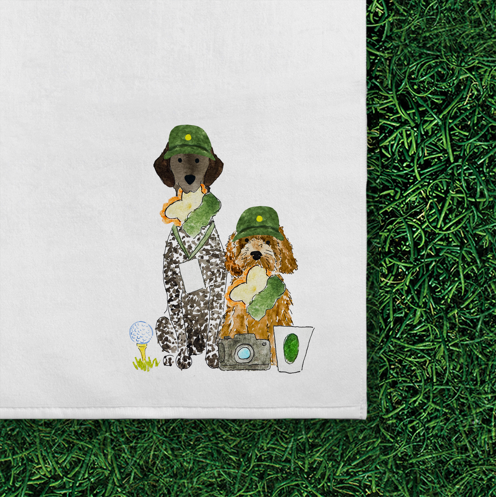 Each towel features luxe microfiber material that’s soft, absorbent, and great for wiping down clubs or hands during a round. Your pet is illustrated in hand-painted watercolor art—decked out in golf gear for a playful, sporty vibe. A brass clip ring makes it easy to attach to any golf bag for on-the-go convenience.
