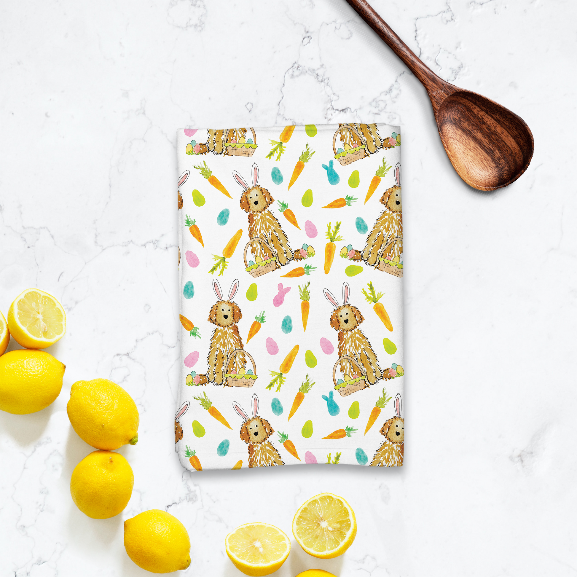 Easter Egg Apricot Doodle Pattern Hostess Towel