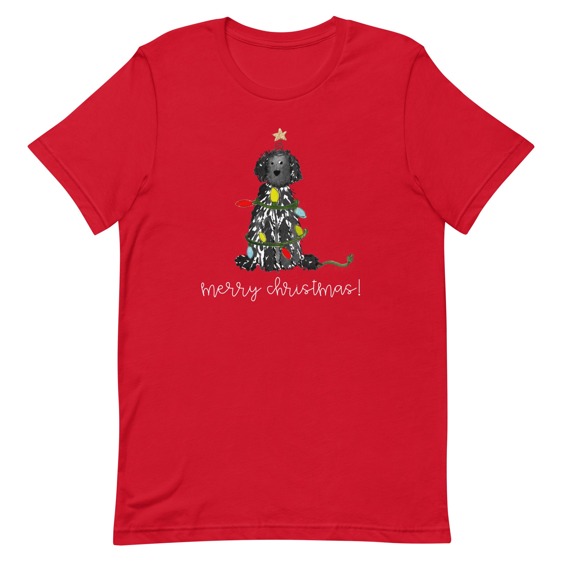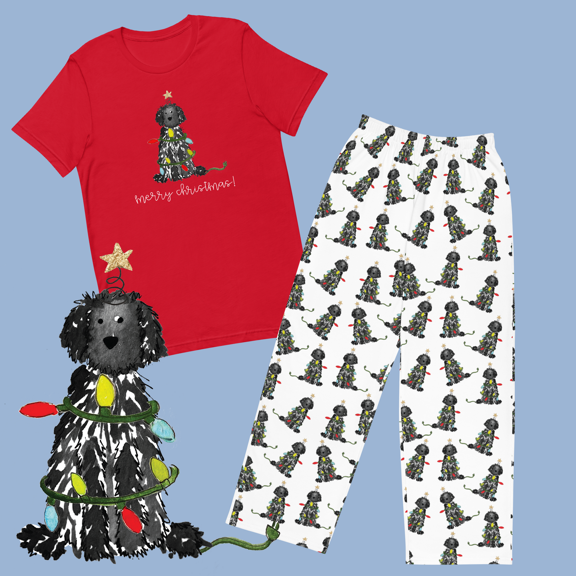 Have a very merry Christmas in this black goldendoodle Bella Canvas tee! The handpainted watercolor fluffy black dog is the perfect match for labradoodles, goldendoodles, and every doodle in between! Perfect for pairing with the matching pajama pants or by itself. It feels soft and lightweight, with the right amount of stretch. It's unisex cut makes it comfortable and flattering for all.