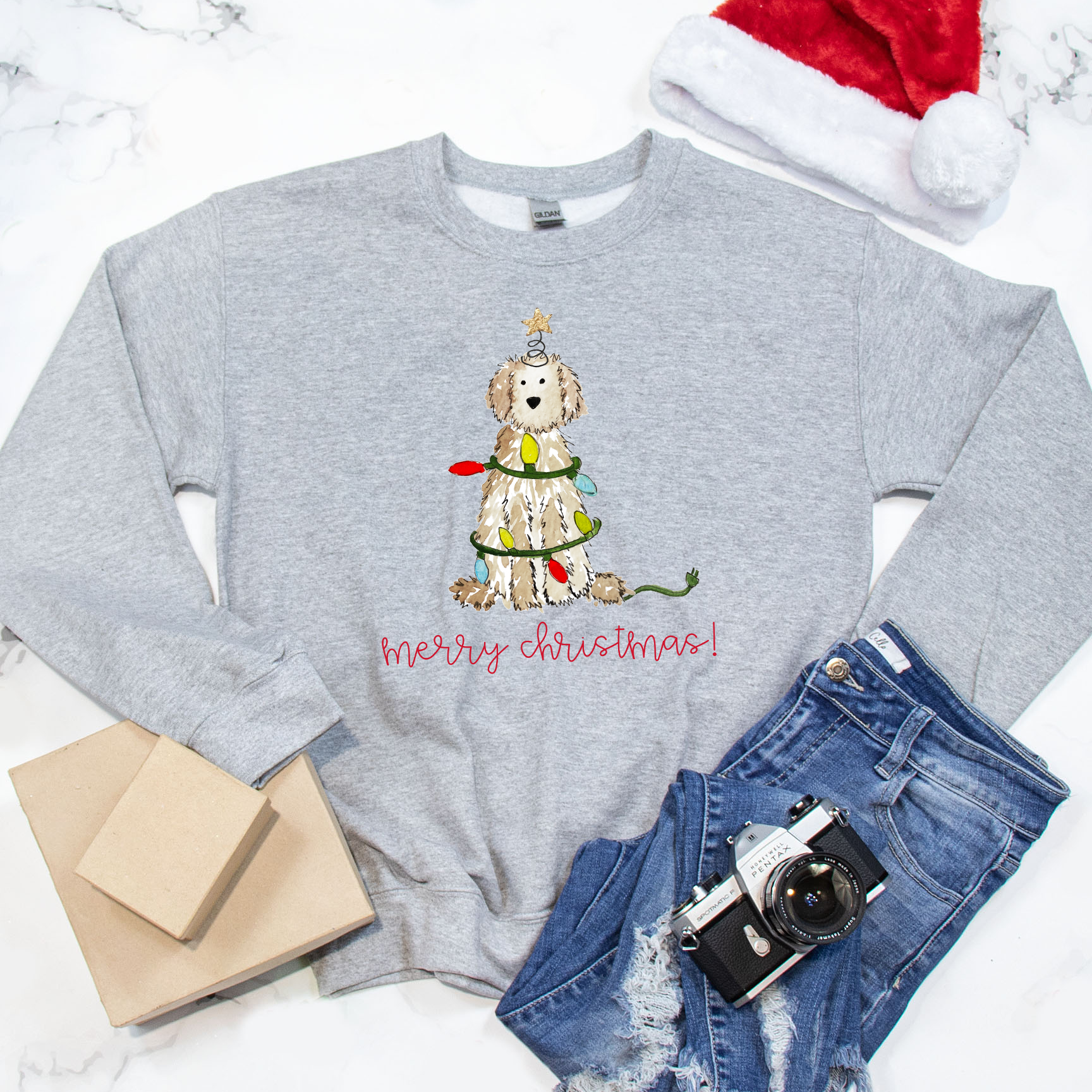 Festive Christmas Cream Doodle Gildan Sweatshirt