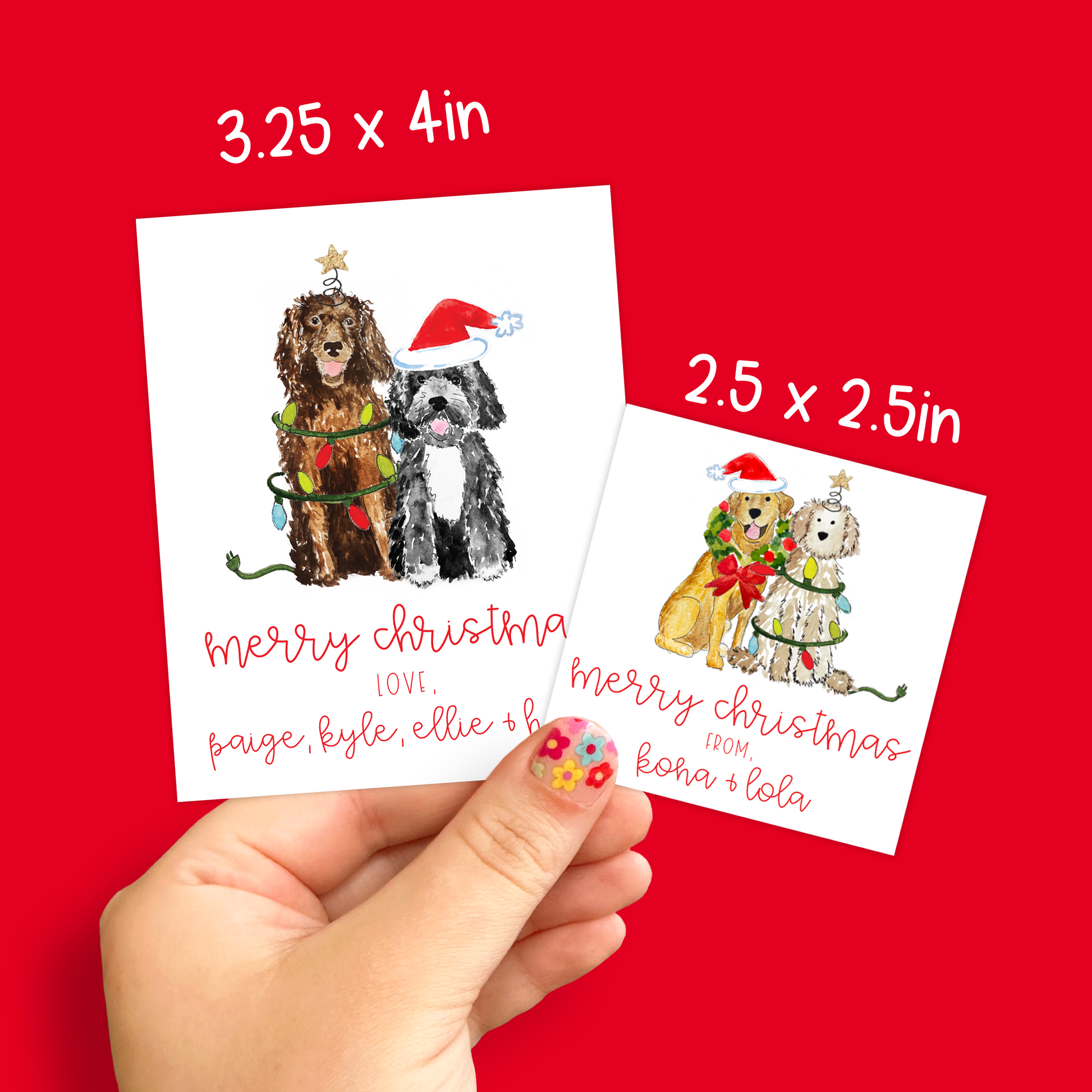 Make your holiday gifts extra merry and bright this Christmas with these personalized gift tag stickers featuring handpainted watercolor art! Customize your tags with your own pets, holiday greeting, and name for a design that's all yours.
