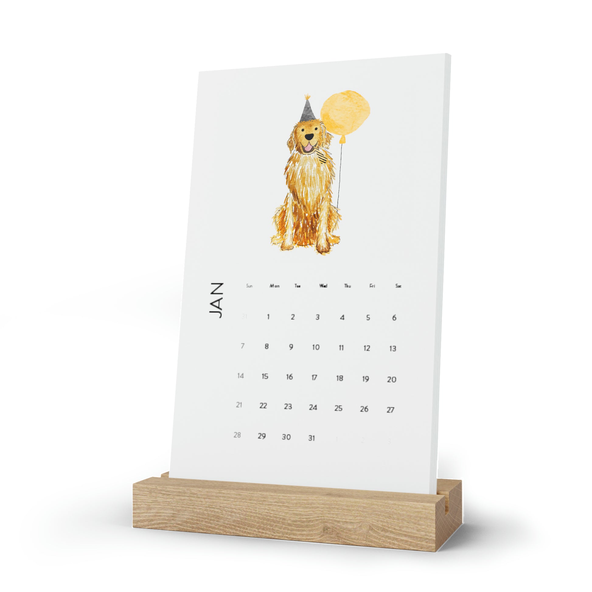 Celebrate everything 2024 has in store with this adorable Golden Retriever calendar tabletop calendar featuring fun, hand-painted art that changes every month. The perfect match to black Goldendoodles and black Labradoodles