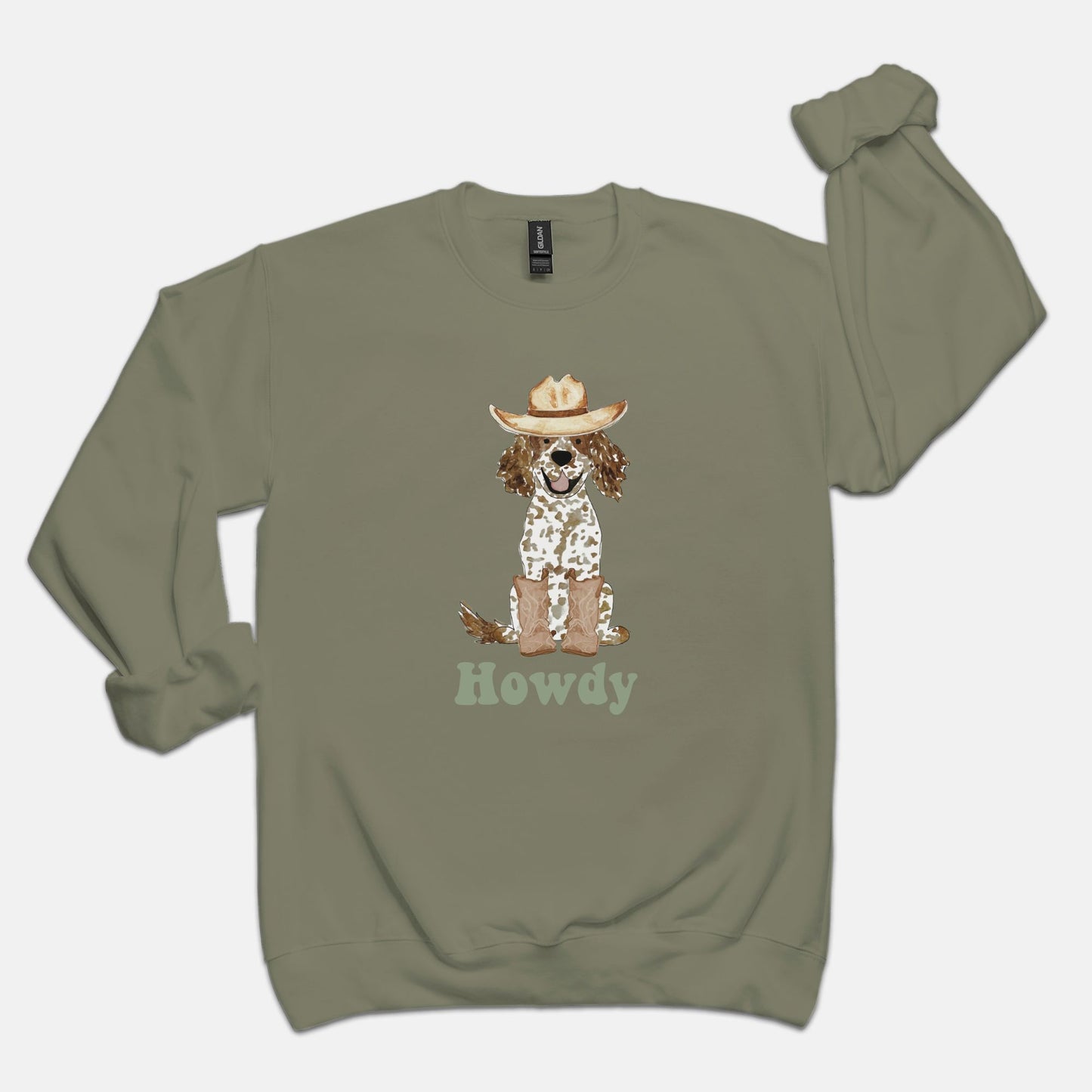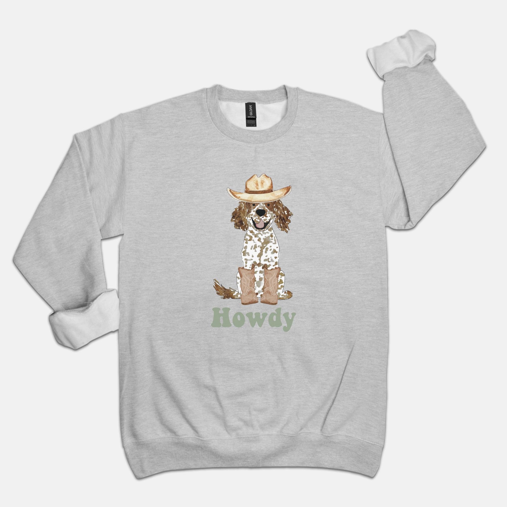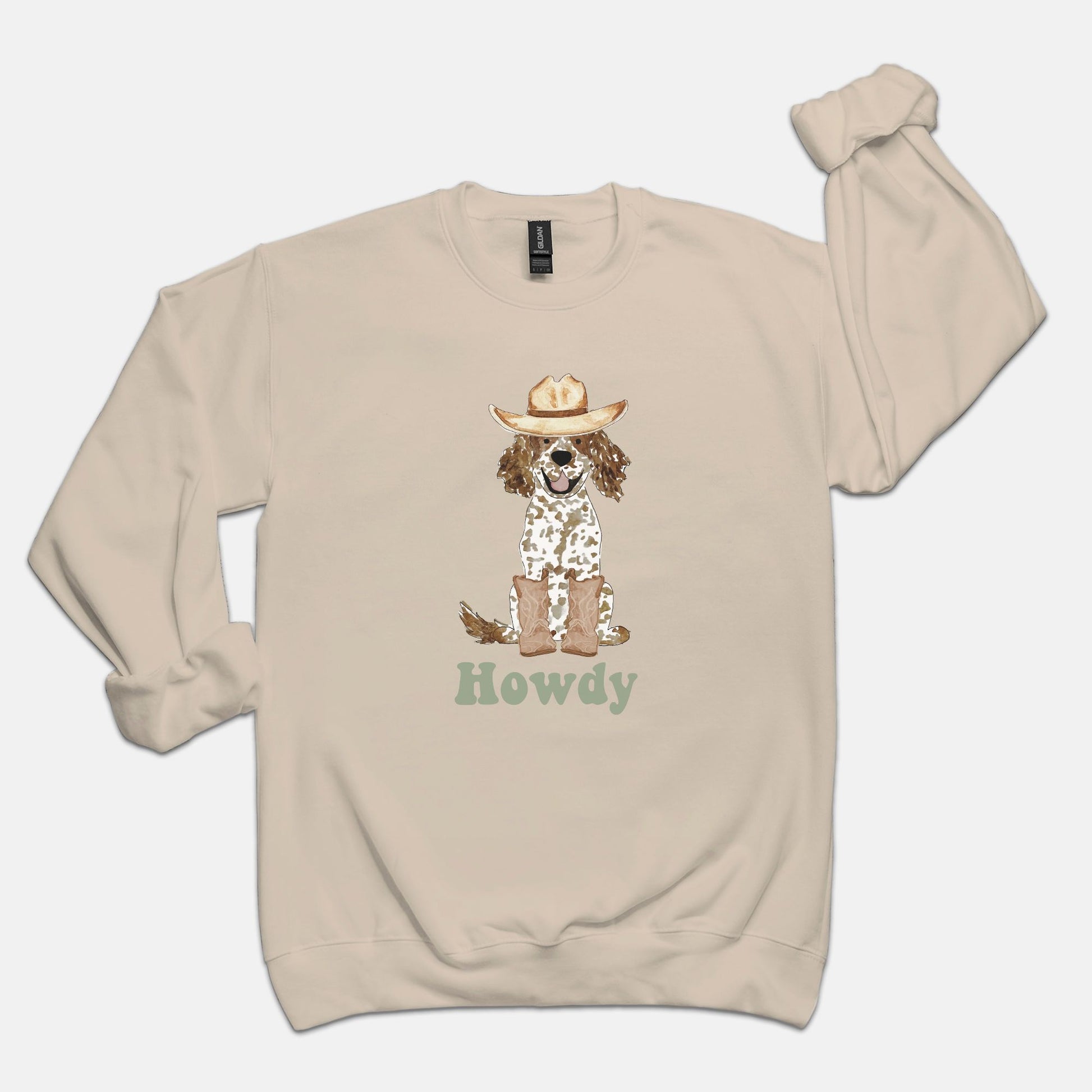 Howdy Cowboy Brown Parti Spaniel Gildan Sweatshirt