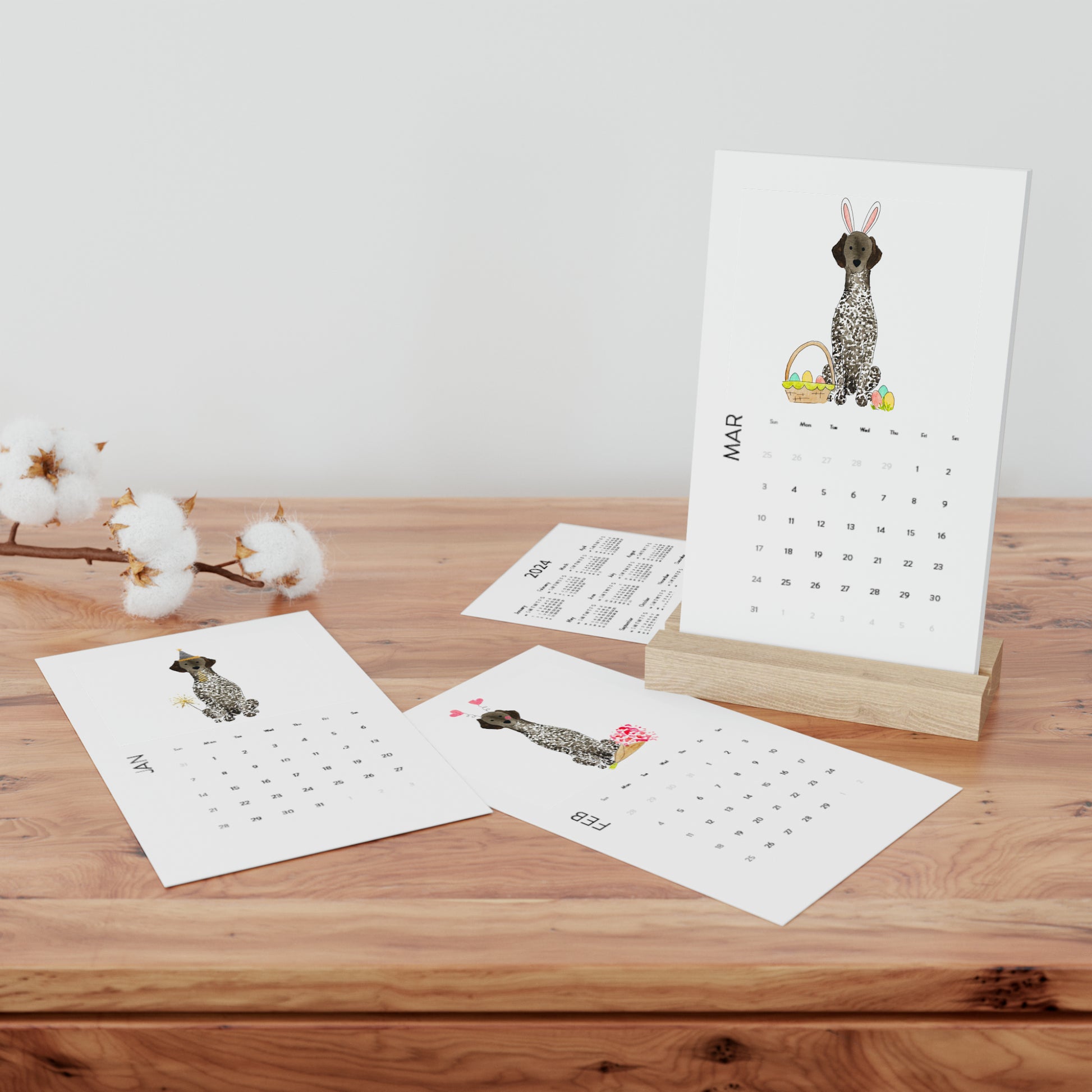 Celebrate everything 2024 has in store with this adorable German Shorthaired Pointer calendar tabletop calendar featuring fun, hand-painted art that changes every month. The perfect match to black Goldendoodles and black Labradoodles