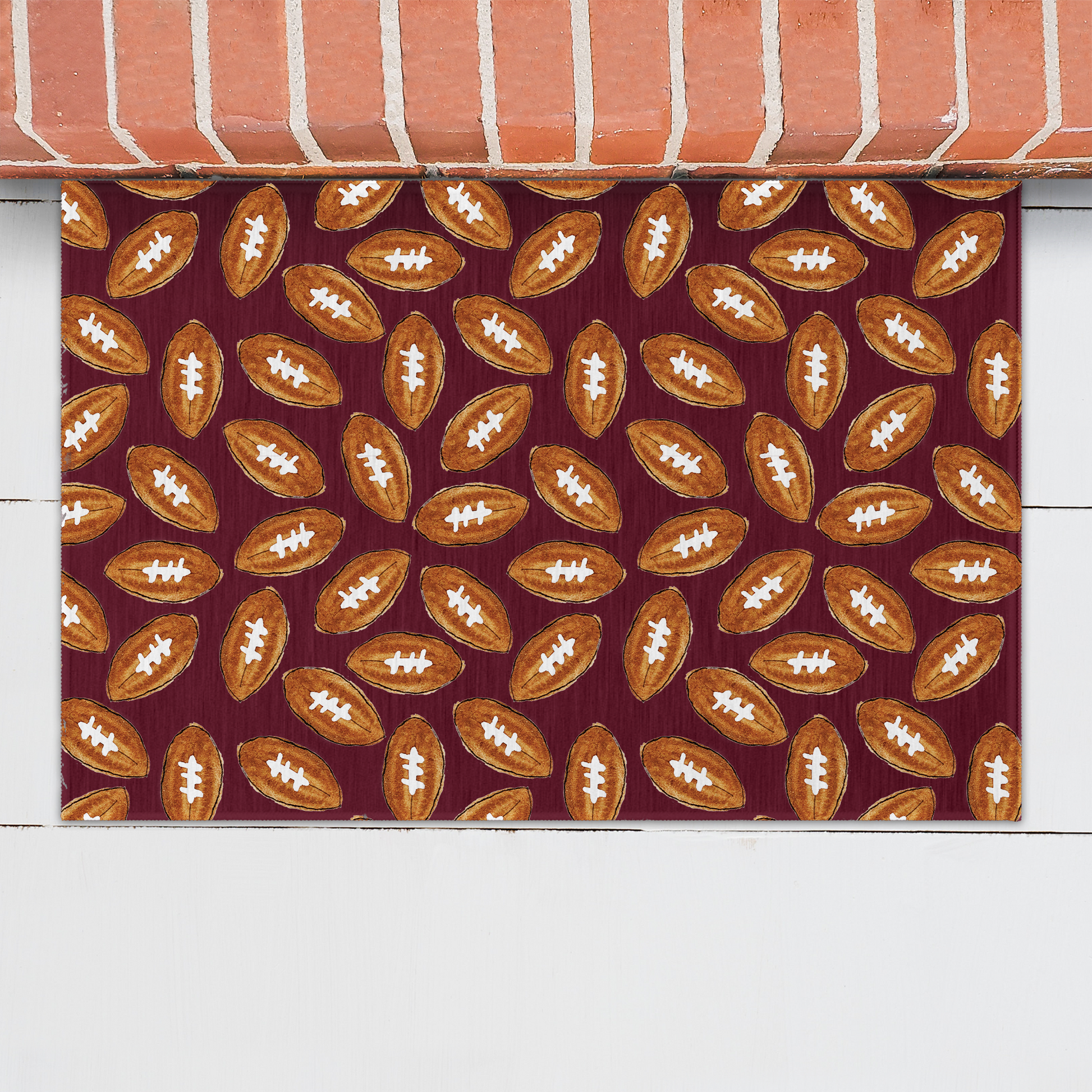 Maroon Football Pattern Welcome Mat