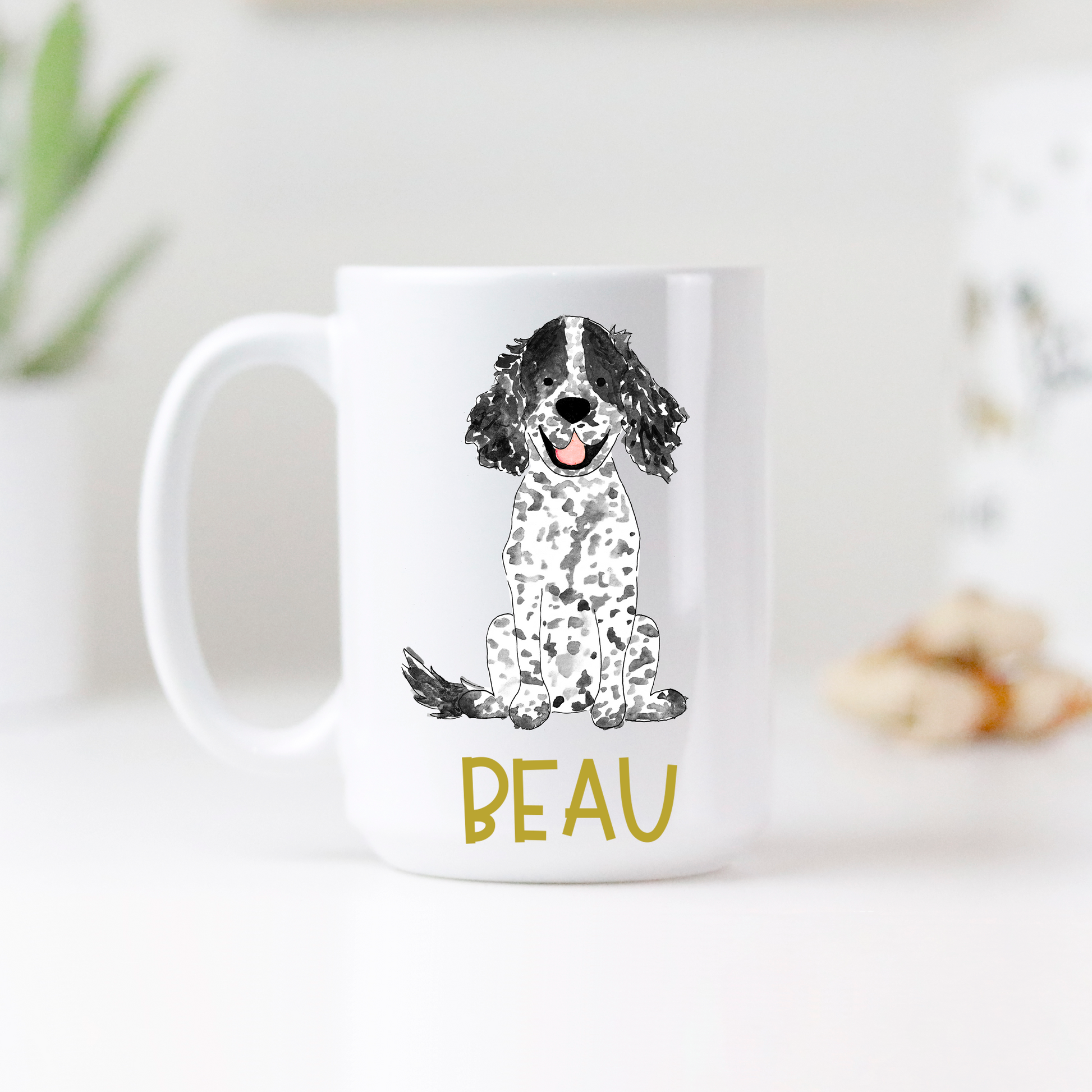 Coffee with a friend is great, but coffee with man's best friend is much much better! Celebrate your fluffy bestie with this adorable mug featuring hand painted watercolor art. Customize your mug with a Spaniel that looks just like yours and personalize with their name in your font and color of choice! These are a great gift for new puppy parents, Christmas gifts for pet lovers, mother's day gifts, or just a fun addition to your own coffee routine!