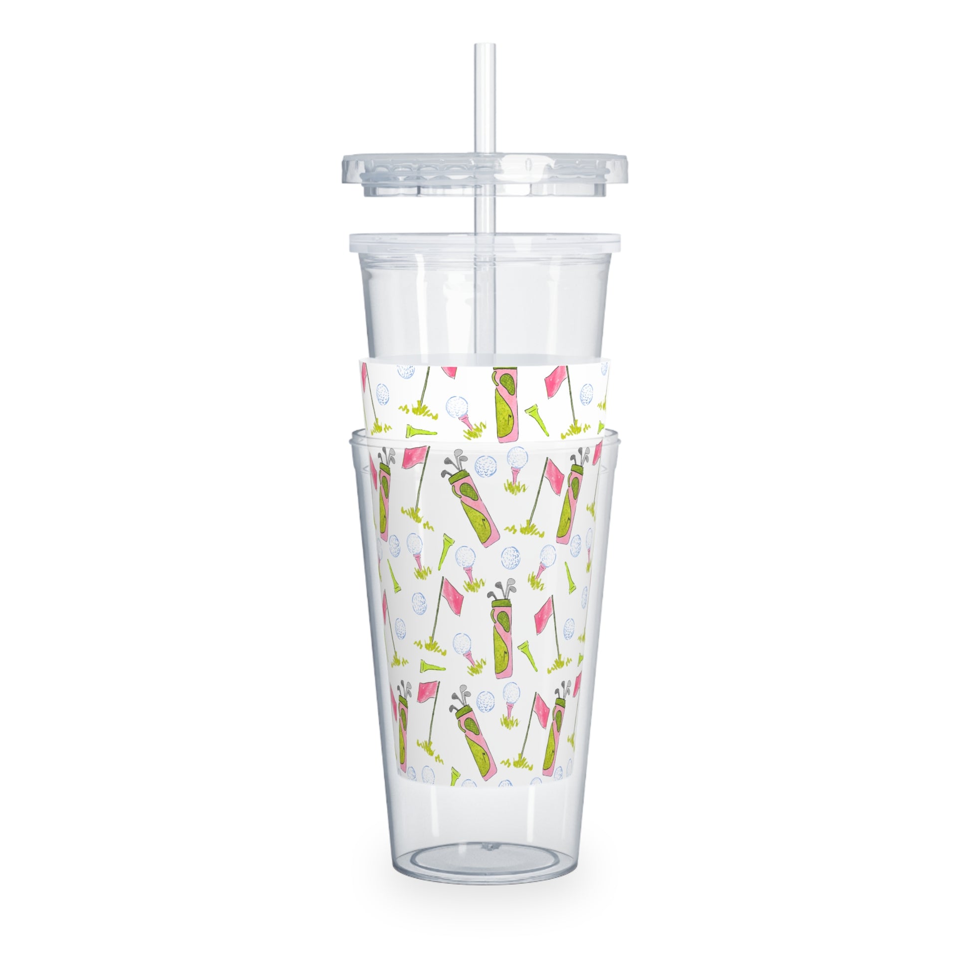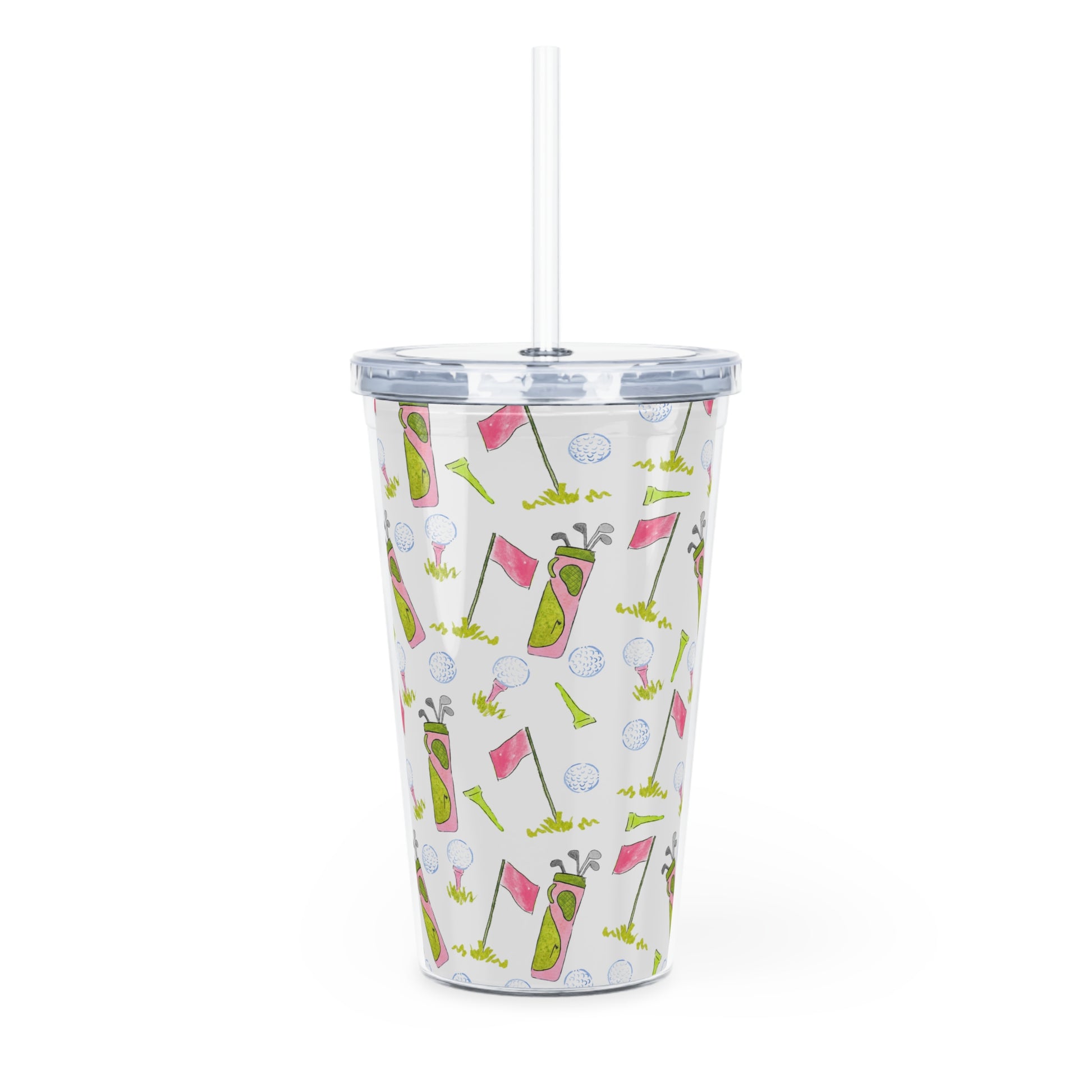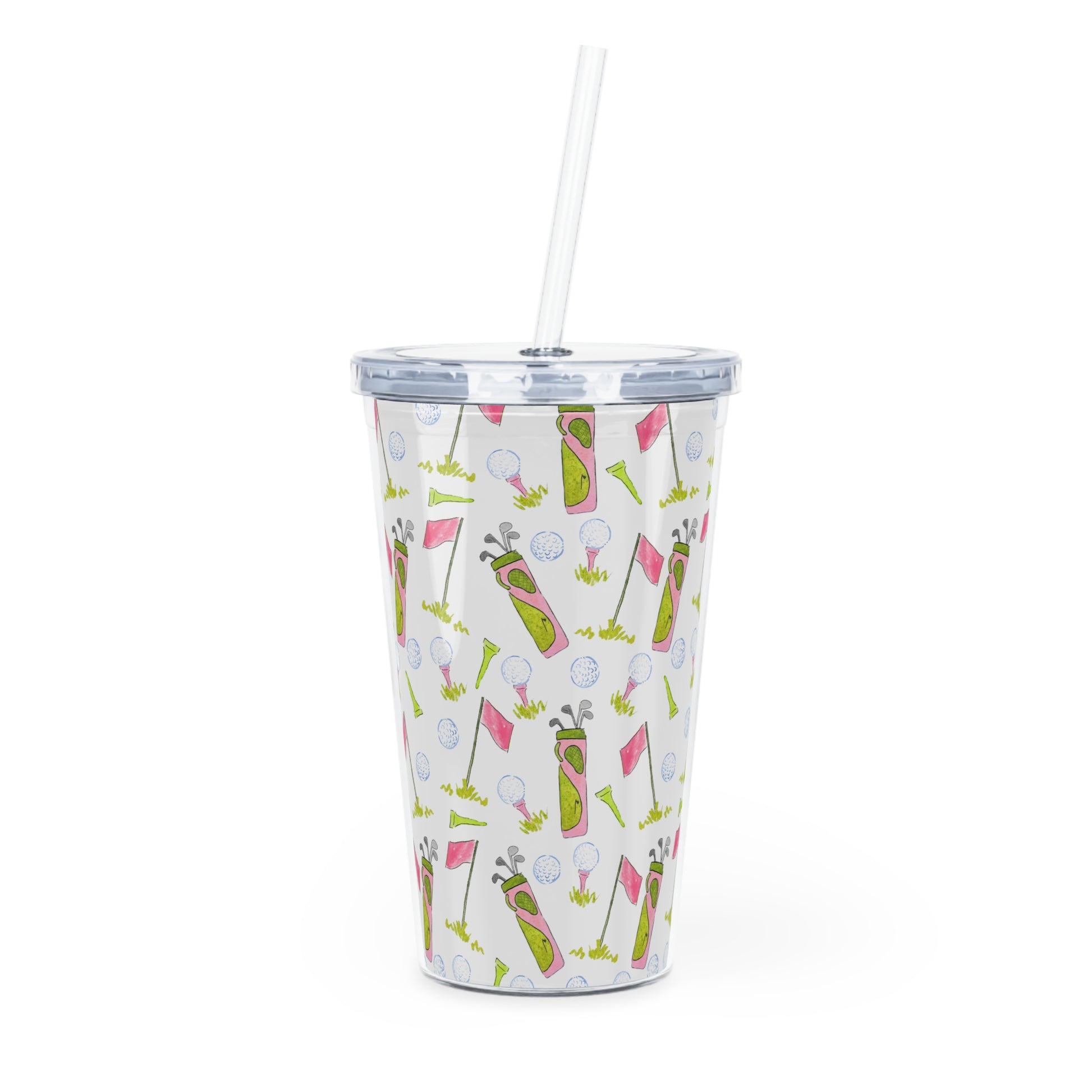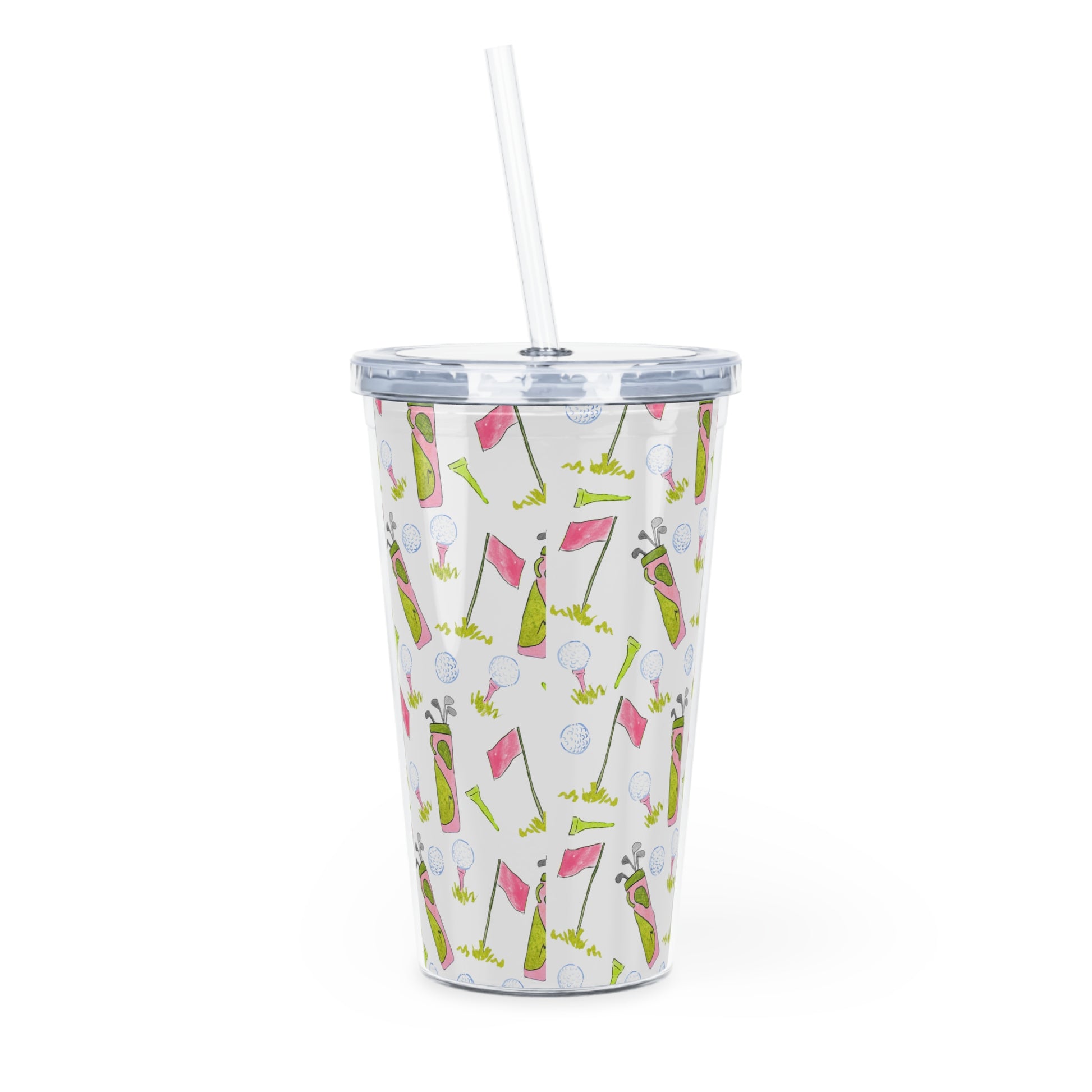 Pink Birdie Pattern Plastic Tumbler with Straw
