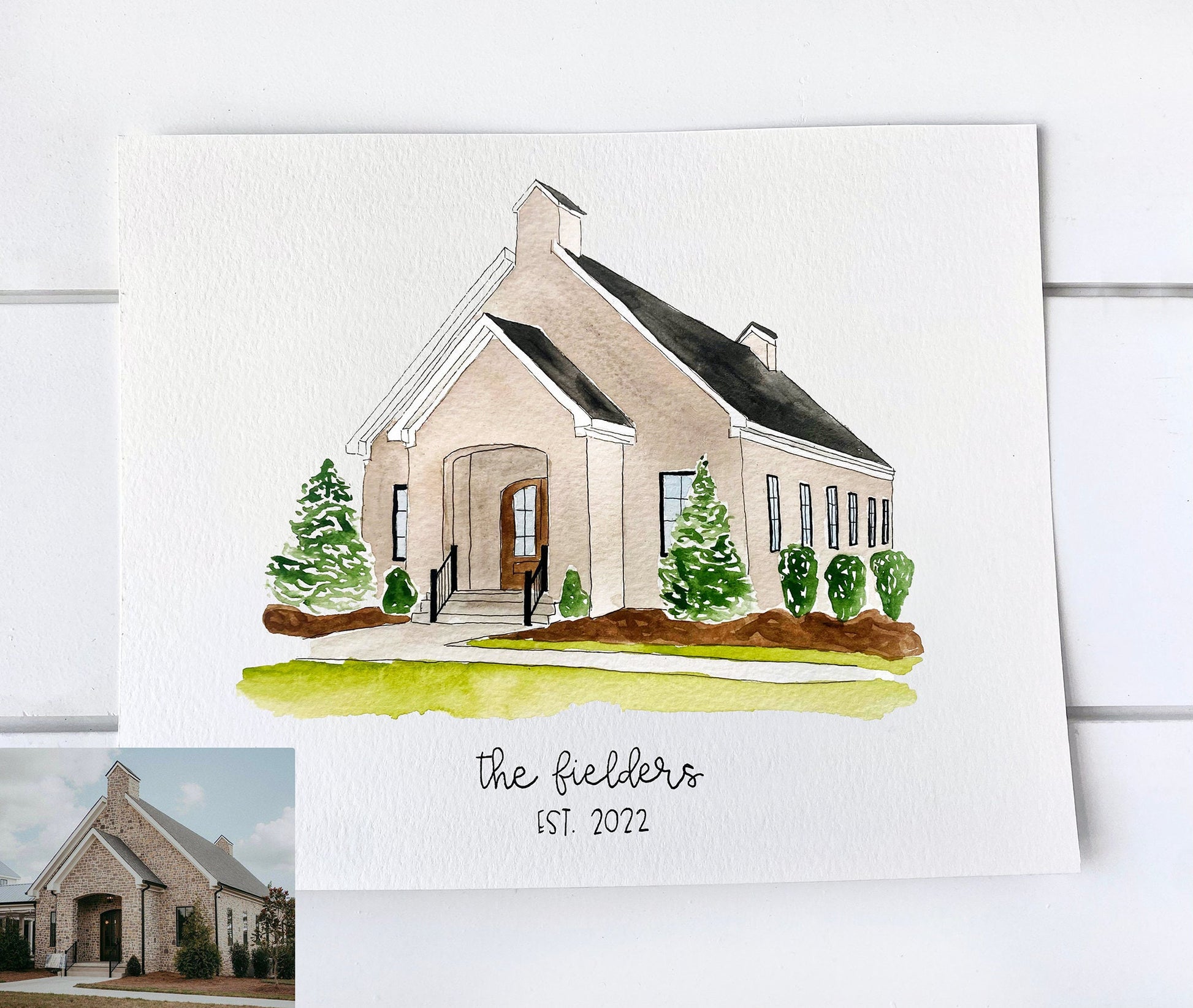 Custom Watercolor Wedding Venue Portrait | Wedding, Anniversary, or First Paper Anniversary Gift