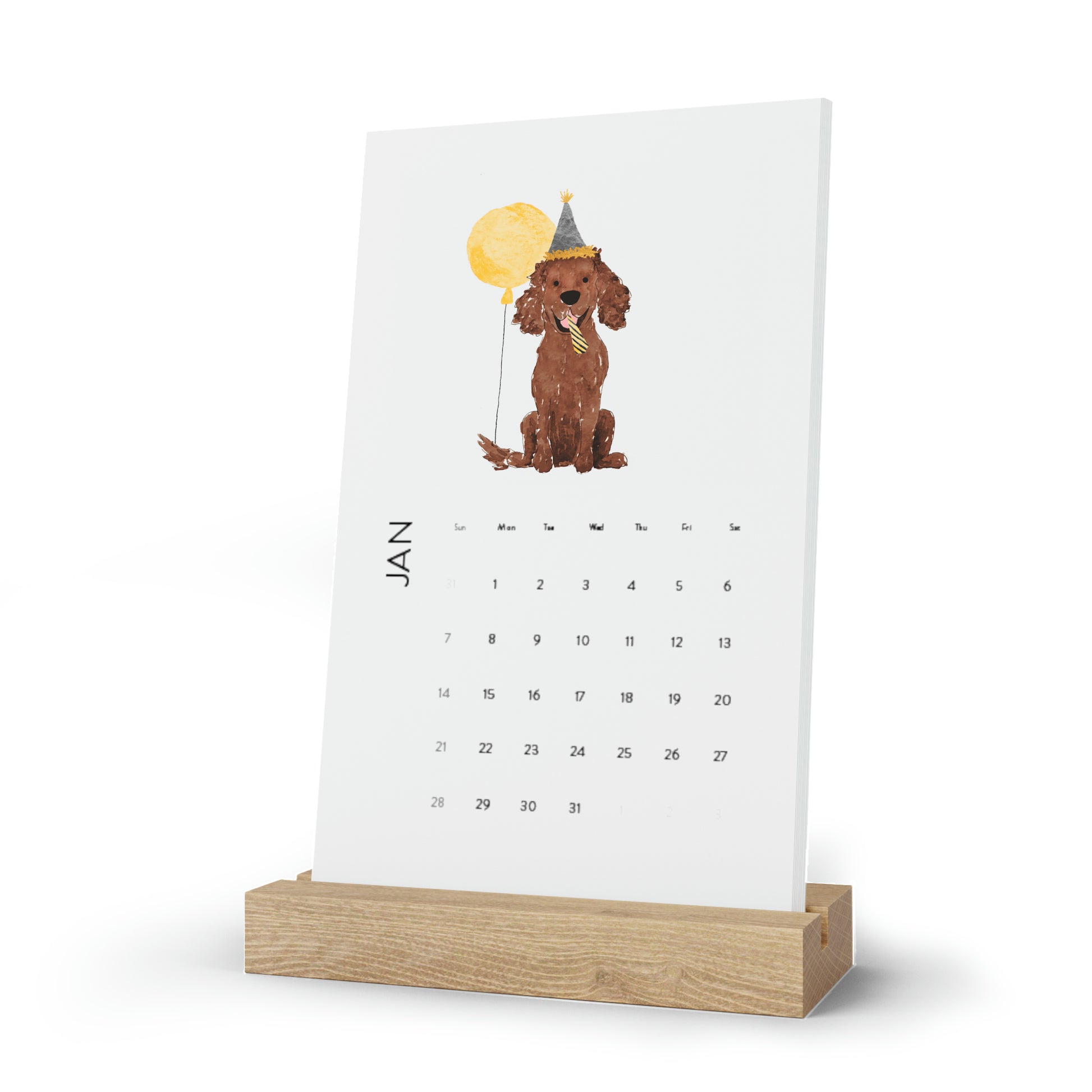 Celebrate everything 2024 has in store with this adorable brown spaniel calendar tabletop calendar featuring fun, hand-painted art that changes every month. The perfect match for boykin spaniels!
