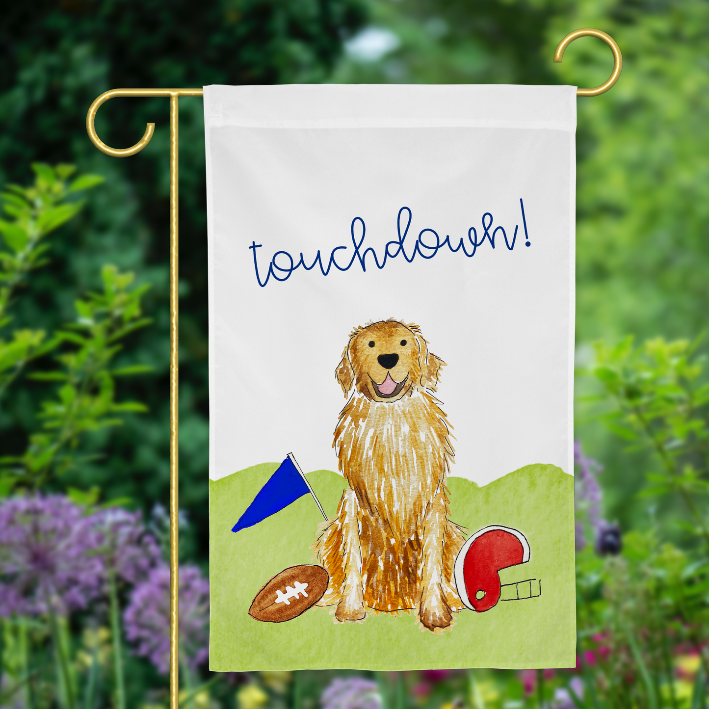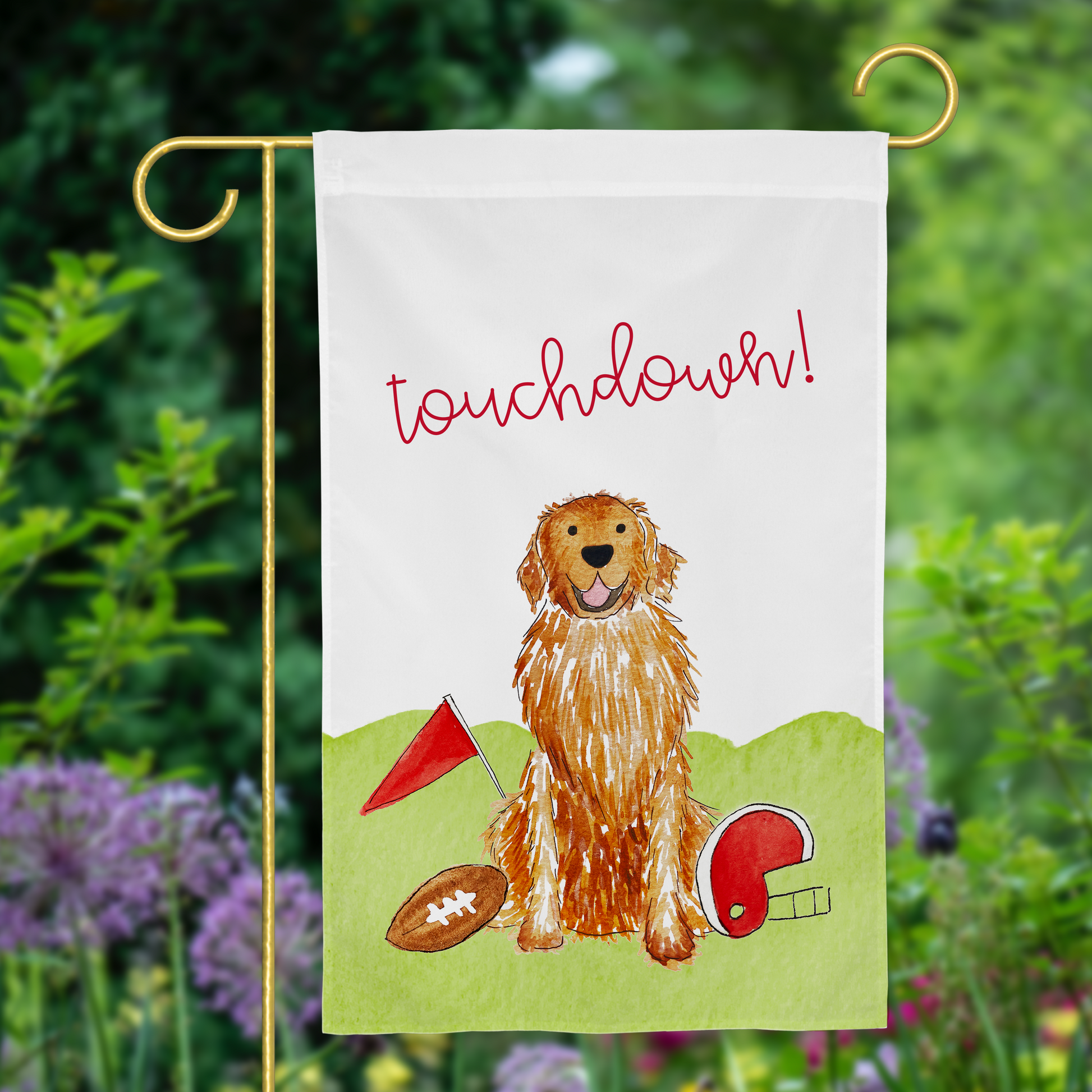 Sporty Football Golden Retriever Garden Flag