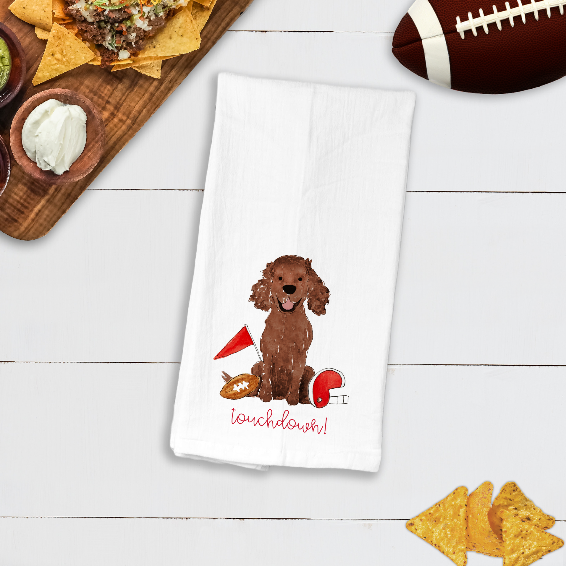 Sporty Football Spaniel Tea Towel