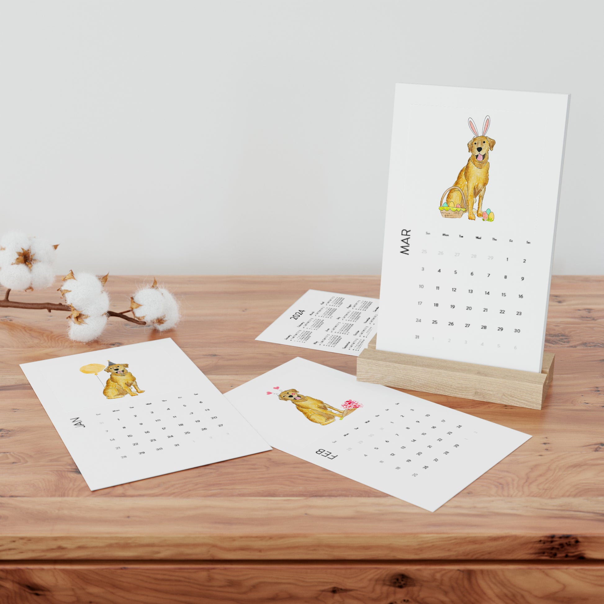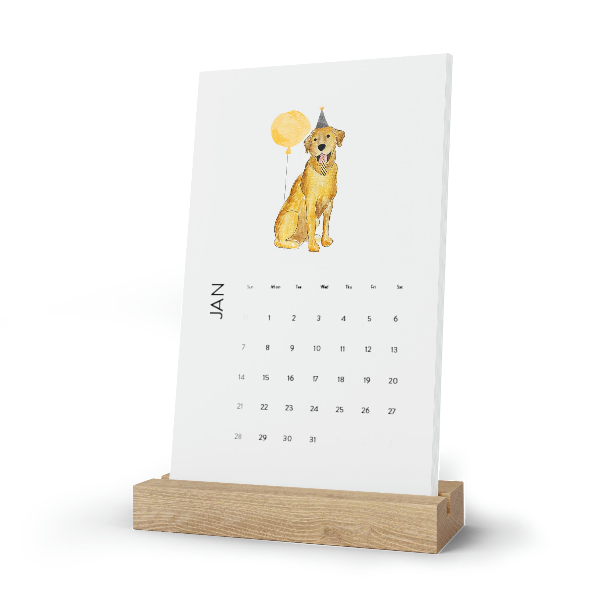Celebrate everything 2024 has in store with this adorable yellow Lab calendar tabletop calendar featuring fun, hand-painted art that changes every month. The perfect match to black Goldendoodles and black Labradoodles